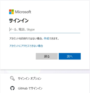3.サインインの画面が表示されるので、Microsoftアカウントとパスワードを入力。