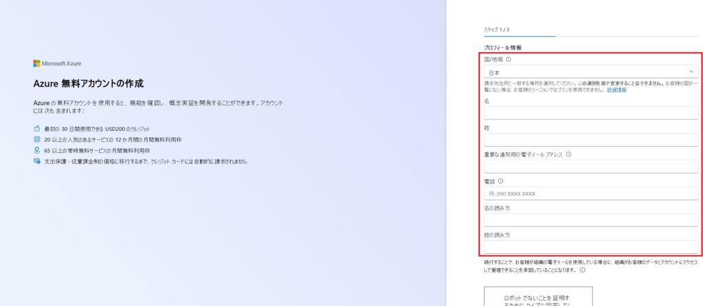1.Azure無料アカウントの登録ページをブラウザで表示。