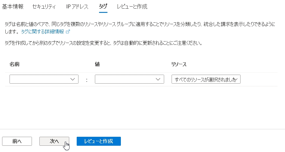 • 必ず「サイズ」の選択画面で、現在のサブスクリプションで利用可能な(クォータに余裕がある)サイズであることを確認してください。