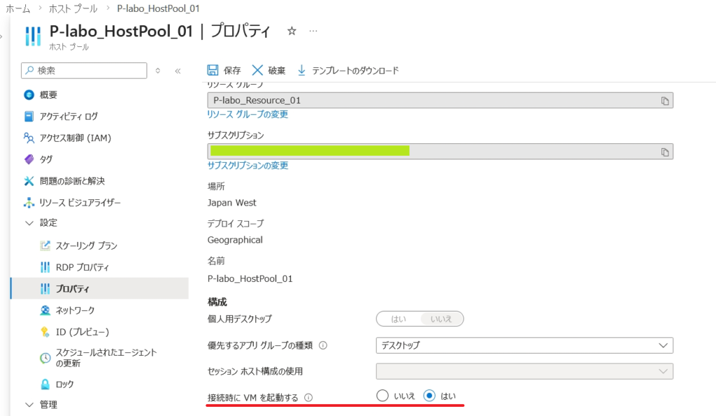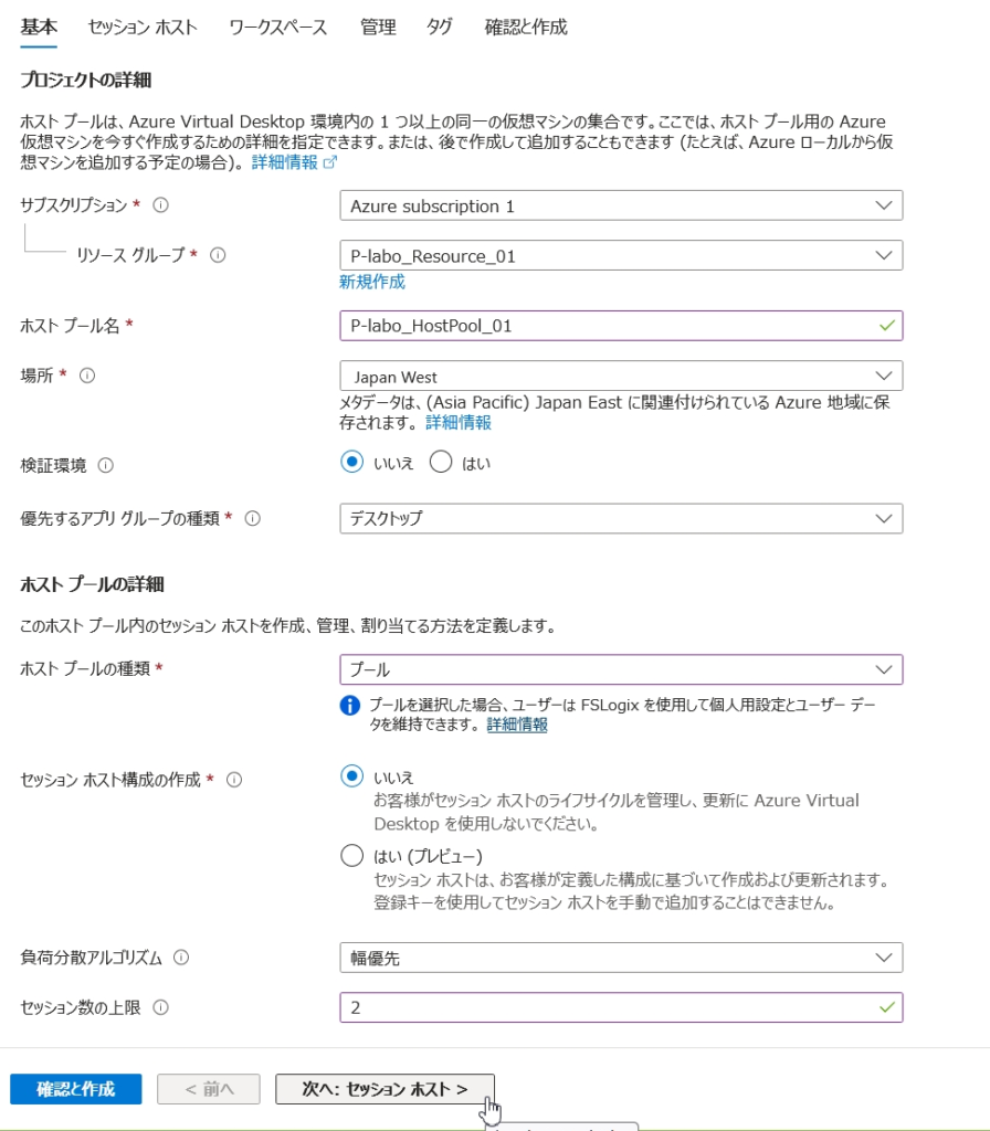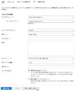• 地域: ホストプールと同じ場所(Japan Westなど)を選択。