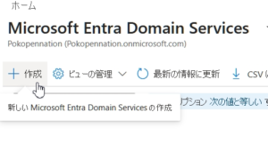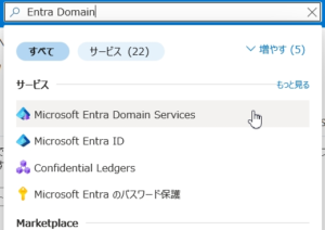 Azureポータルで「Microsoft Entra Domain Services」を検索し、作成を開始します。