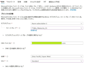 adds.example.com)。 - 地域: AVD(FSLogix)などをデプロイする仮想ネットワークと同じリージョンを選びます。