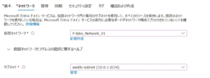 - サブネット: Entra DS専用のサブネット(