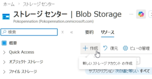 1. Azureポータルで「ストレージアカウント」を作成します。