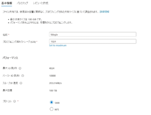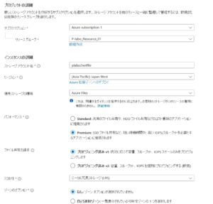 | Azure Files | Standard | 1GiB ※Profileとしては10GiB以上を推奨 | 約4.3~4.6円/GiB |