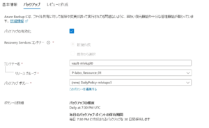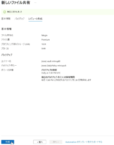 リージョンはAVDのVMと同じ場所を選び、冗長性はコスト重視の「LRS」を設定します。
